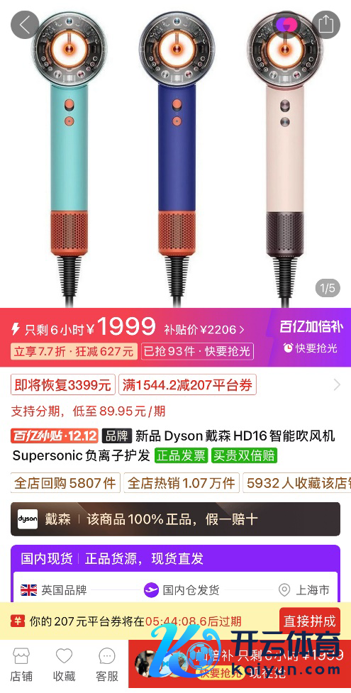 ▲上线“超等加倍补”的戴森HD16 吹风机,价钱直降1000元至1999元。