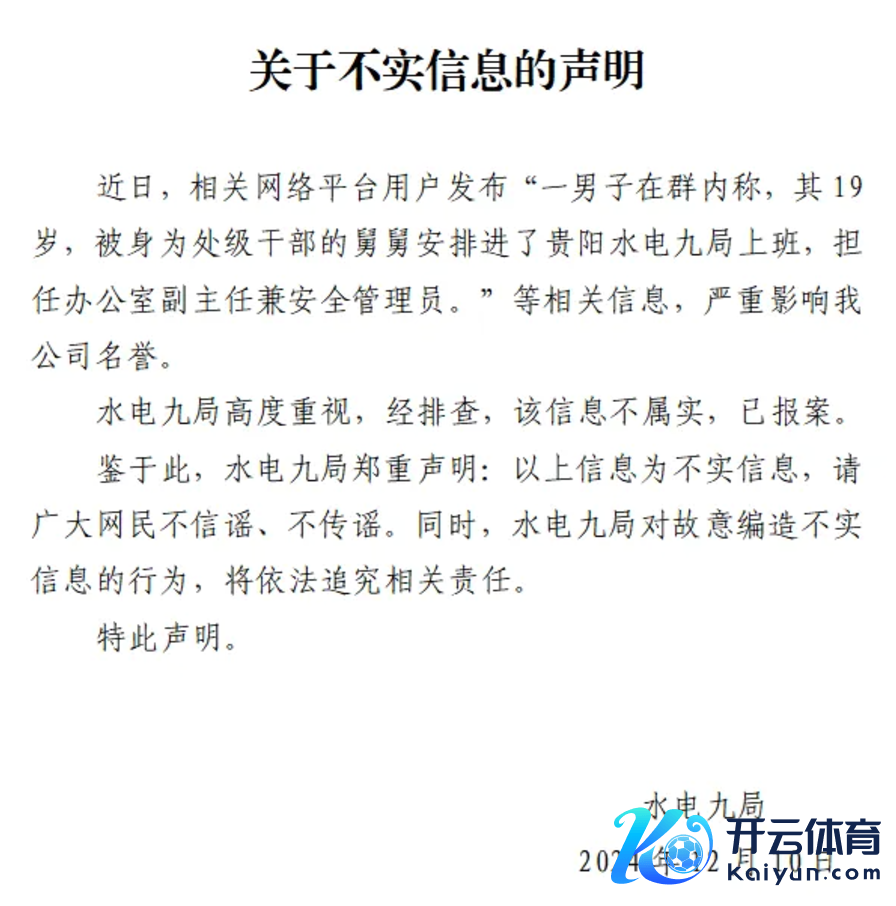 须眉称19岁被舅舅安排任办公室副主任?水电九局声明:信息伪善,已报案须眉称19岁被舅舅安排任办公室副主任?水电九局声明:信息伪善,已报案