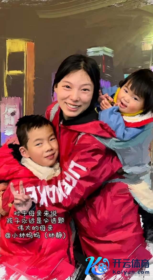 两个孩子一个被宝妈背在死后,一个围着宝妈笑闹,让东说念主看着不自觉心里也随着漾起笑意。