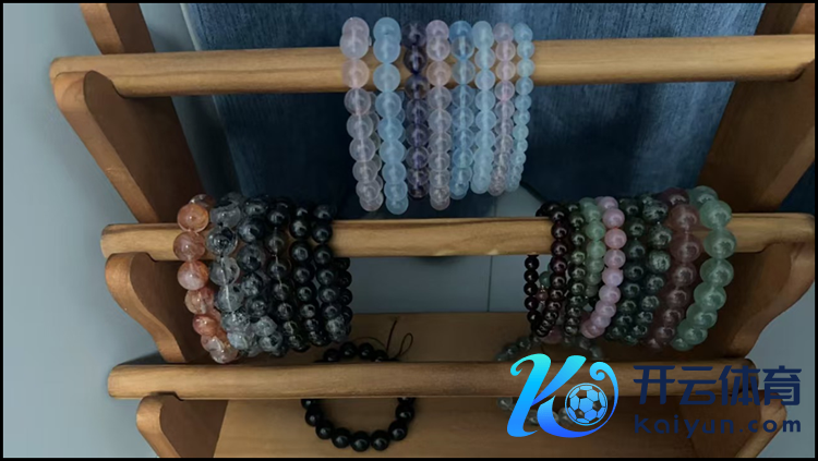 二十多岁的白女士在实体店看到一条水晶手串,被其颜值招引,花了毛糙700元买下。之后又买了一个奶白晶的手镯,“别的材质买不起这样透的。”