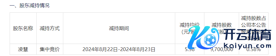 证据创世纪历史公告,凌慧原捏有公司3390.94万股,占那时公司股份总和的2.04%(剔除已回购股份数后),2024年8月22日—8月23日,凌慧以鸠合竞价面孔减捏970万股股票,减捏均价5.98元/股,减捏后捏股比例为1.45%。