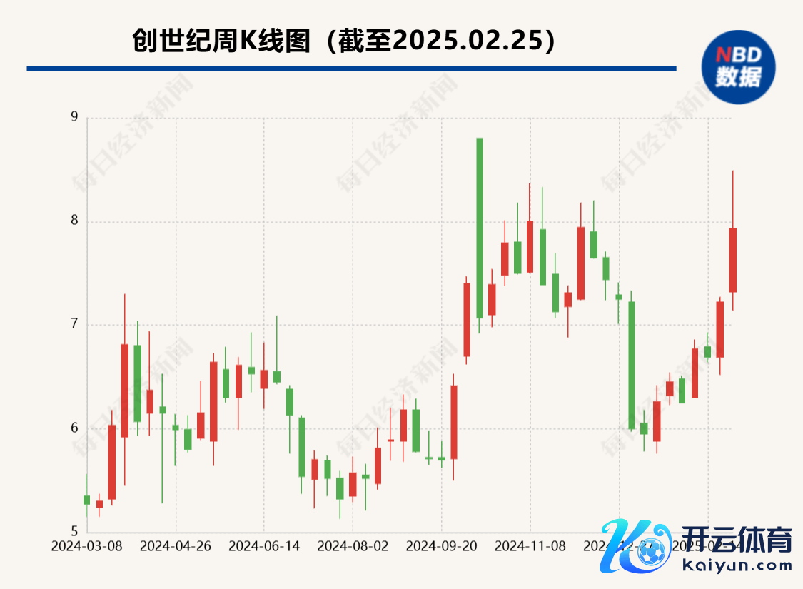 《逐日经济新闻》记者防护到,2024年9月底,创世纪走出一波高潮行情,最高股价达到8.8元/股,2025年于今(2月25日),创世纪最高股价为8.49元/股,最低为5.76元/股。
