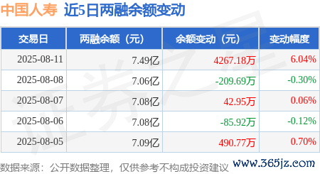 本站音讯,8月11日,中国东谈主寿(601628)融资买入6014.45万元,融资偿还1691.64万元开云体育(中国)官方网站,融资净买入4322.81万元,融资余额7.31亿元。
