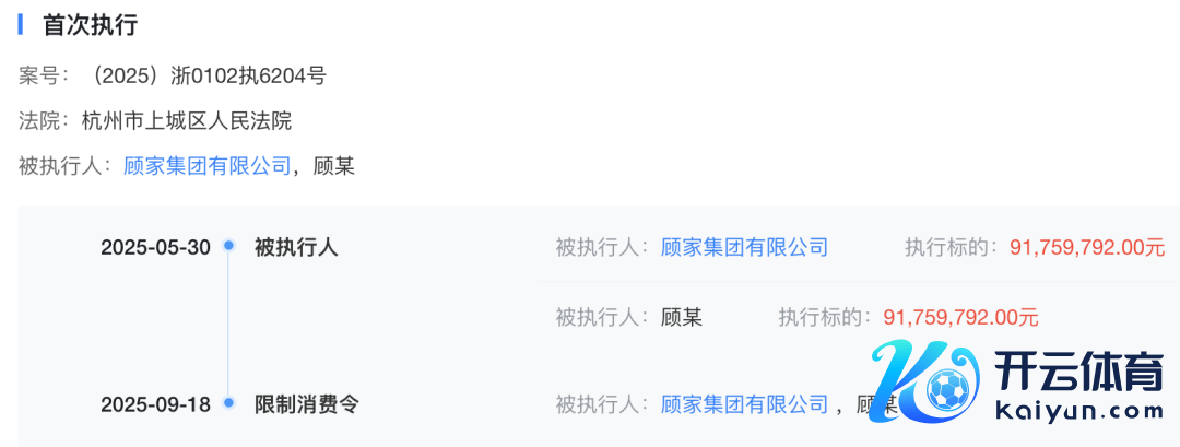改名3天后,顾家集团方位地的杭州市上城区法院,又给集团下达了一个适度破钞令,触及金额9176万元——法院约略未瞻念察公司改名信息,被实验东说念主依旧为顾家集团和顾某(顾江生)。