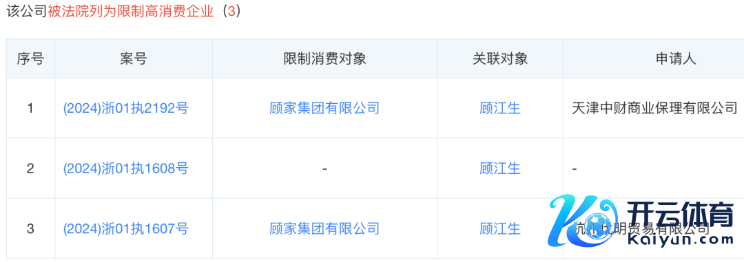 2024年10月、12月,因杭州代明贸易有限公司、天津中财生意保理有限公司等公司恳求,顾家集团依然3次被杭州市中院列为适度高破钞企业。