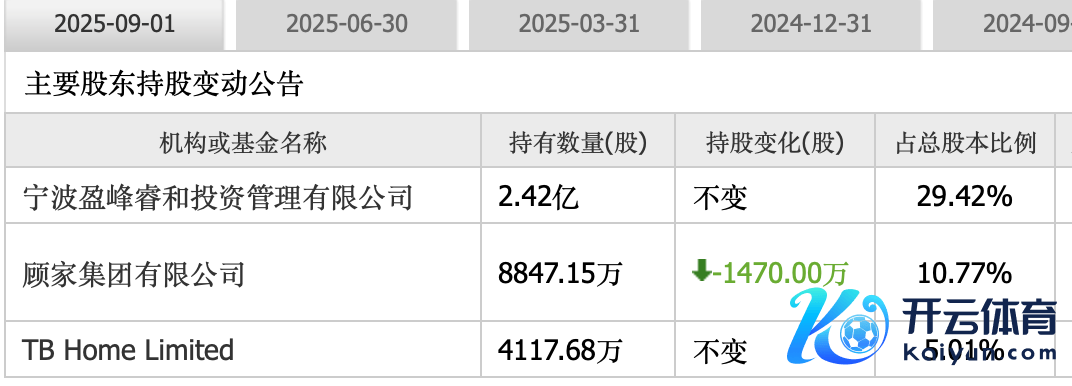 9月1日,这些股份完成过户,顾家集团所捏股份比例着落到10.77%。其一致举止东说念主TB Home Limited依然捏股5.01%。