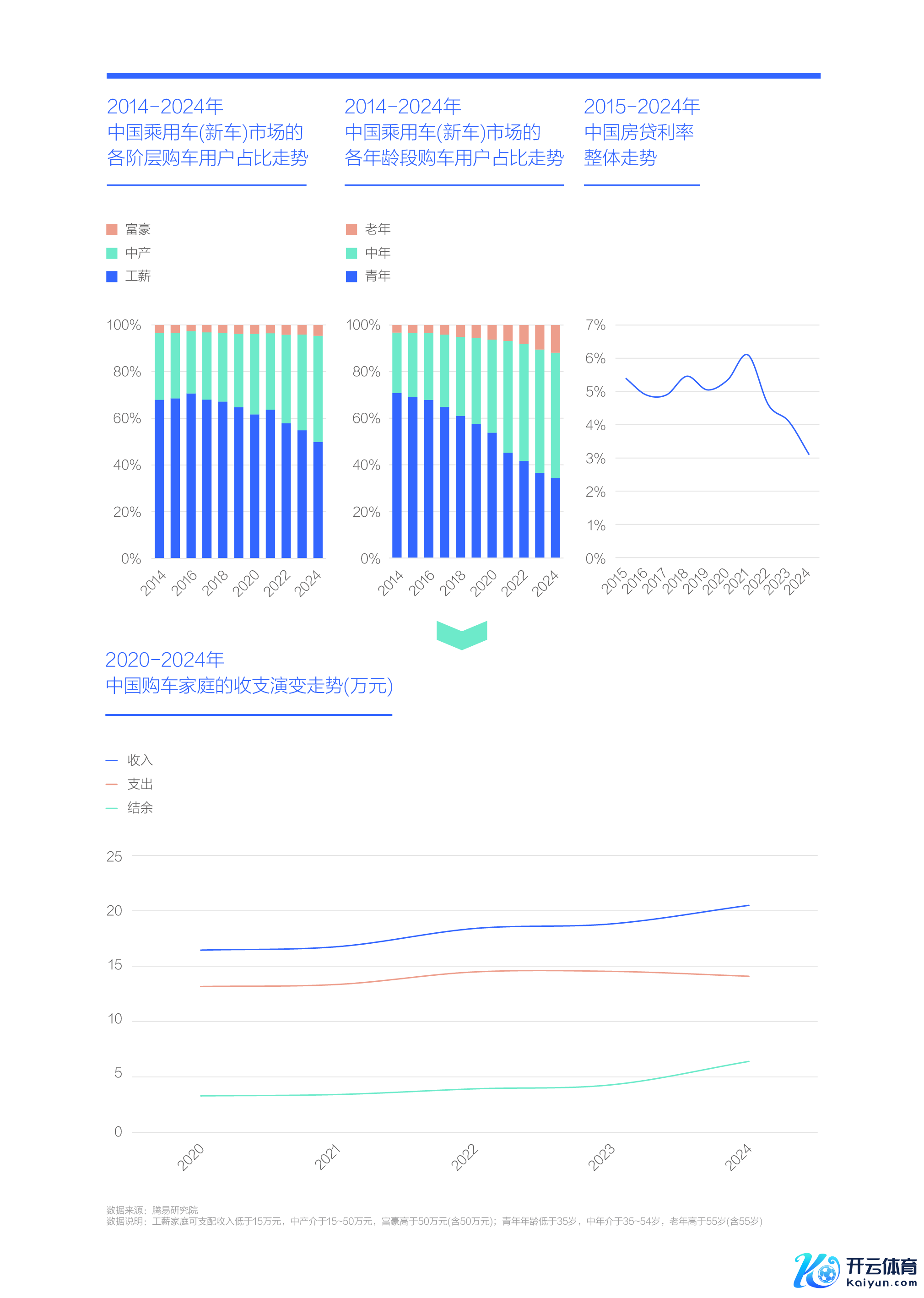 近几年,诚然中国经济的压力有点大,但购车家庭的可运用收入握续普及,2024年一举破裂20万元,升至20.49万元。购车家庭收入增长的能源,主要来自里面结构的优化,尤其是中年化与中产化。2024年中国车市的平均购车年级破裂40岁,中产占比破裂45%,对比也曾的购车主体后生与工薪,新主体的中年与中产的收入水平逾越一大截。疫情后,中国股市的触底反弹与黄金价钱的快速飙升等,也有益于普及领有更多金融资产的中年与中产的收入;