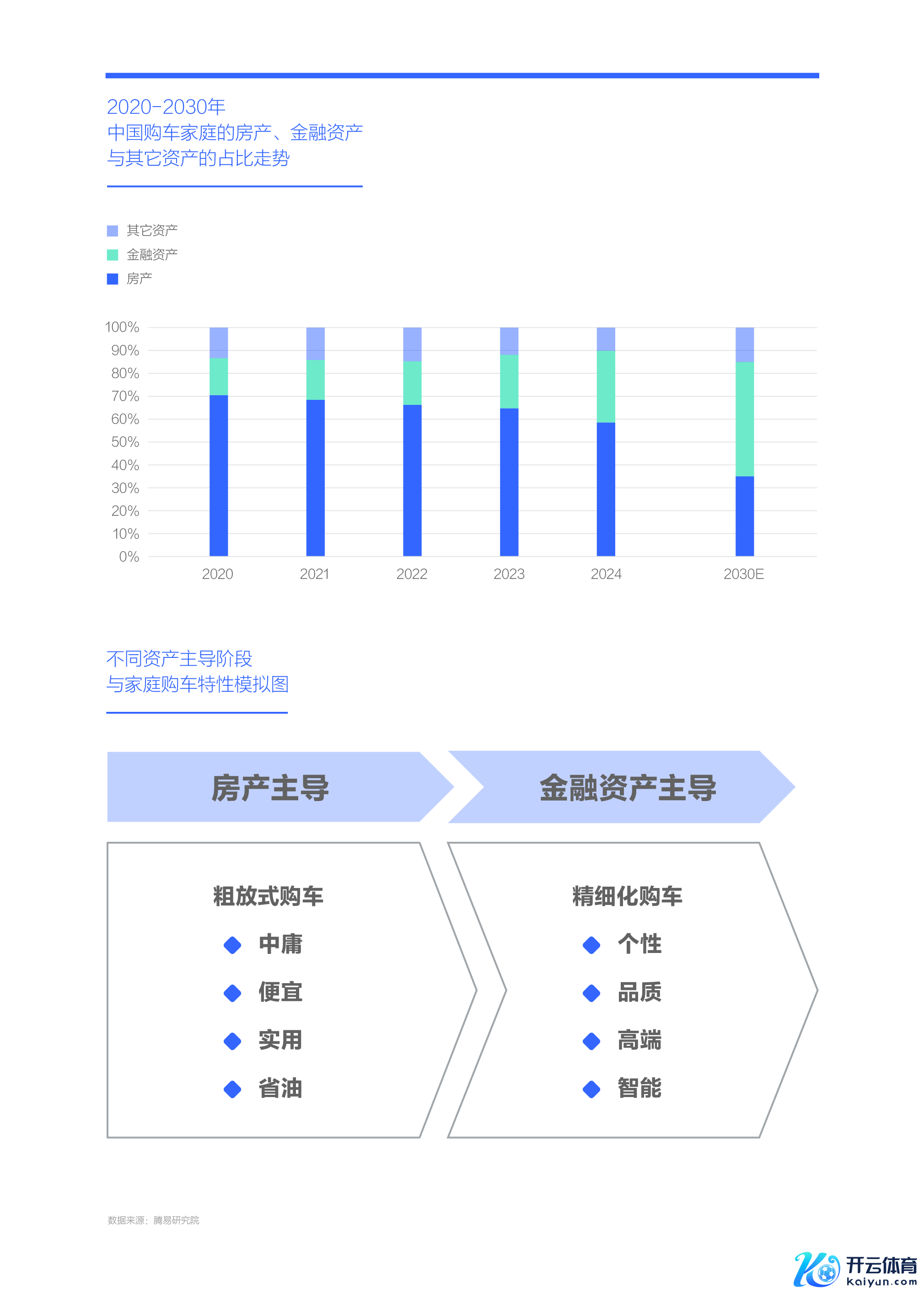 诚然中国购车家庭的结余在加快普及,但家庭净资产加快下滑,阐述着中国购车家庭的资产结构在优化,资产要点由房产转向金融资产。2024年中国购车家庭的金融资产占比已破裂30%,2030年有望破裂50%,助推车市高质地发展,为弘大车企的高端化政策创造千载难逢的新机遇;