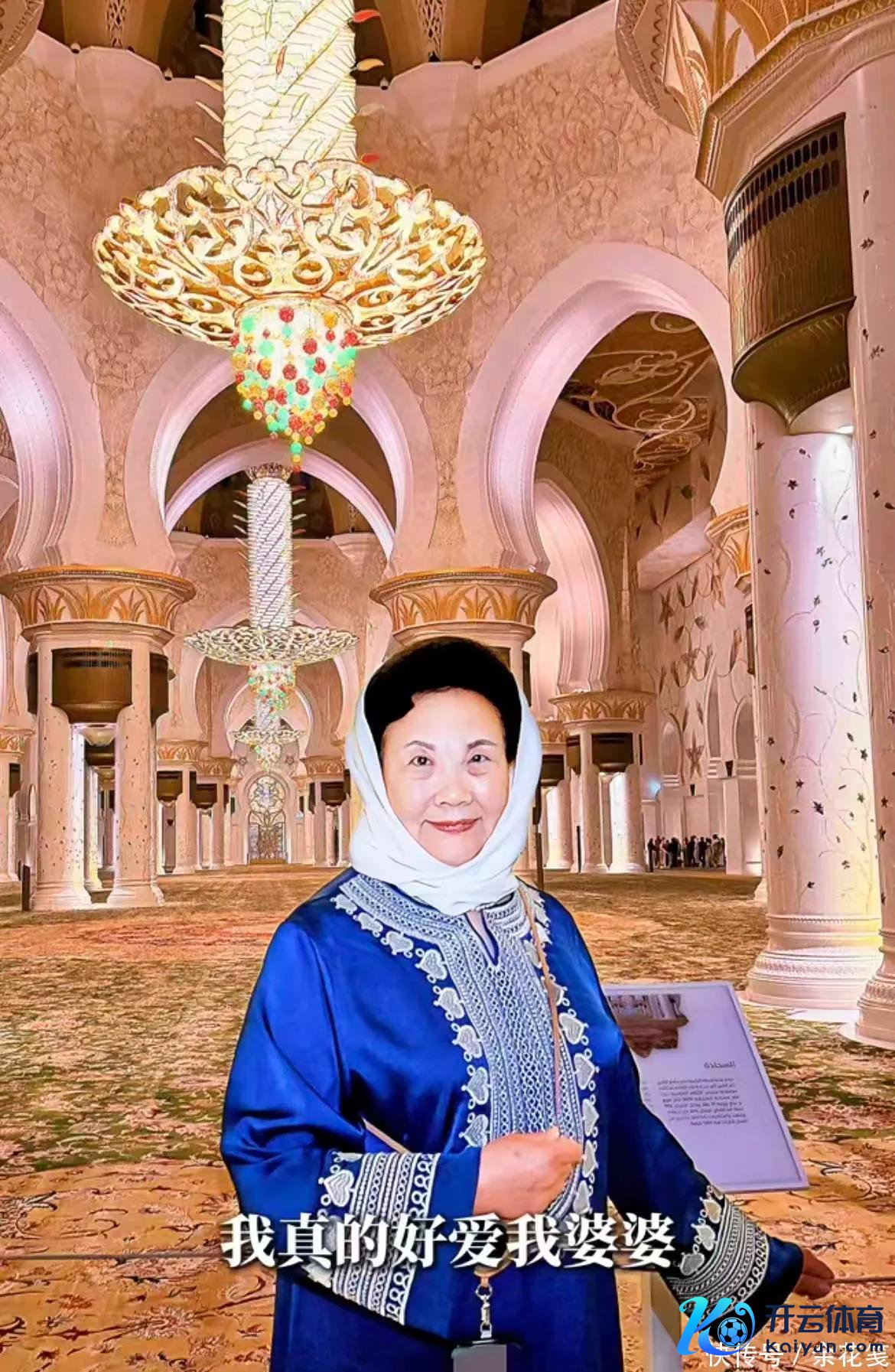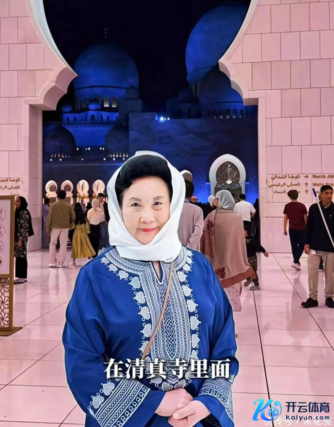 还有两张伊能静家婆单独的像片,她穿戴蓝色丝绸带拈花的套裙,头上围着白色的头巾。不知谈全球有莫得提防到?女生皆带着头巾合影,了解了一下才知谈,女性参不雅清真寺需要戴头巾,这是一种当地的礼节