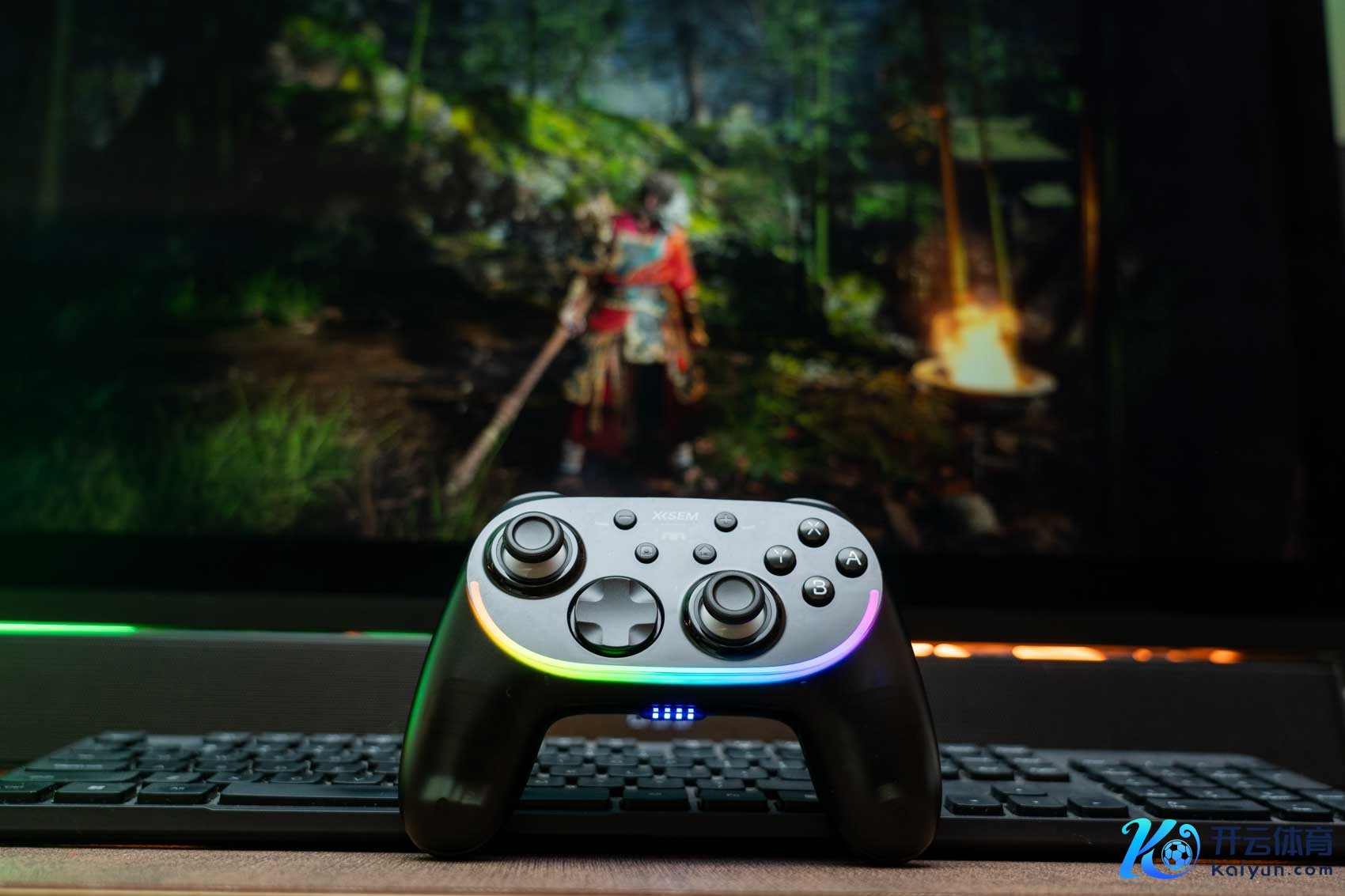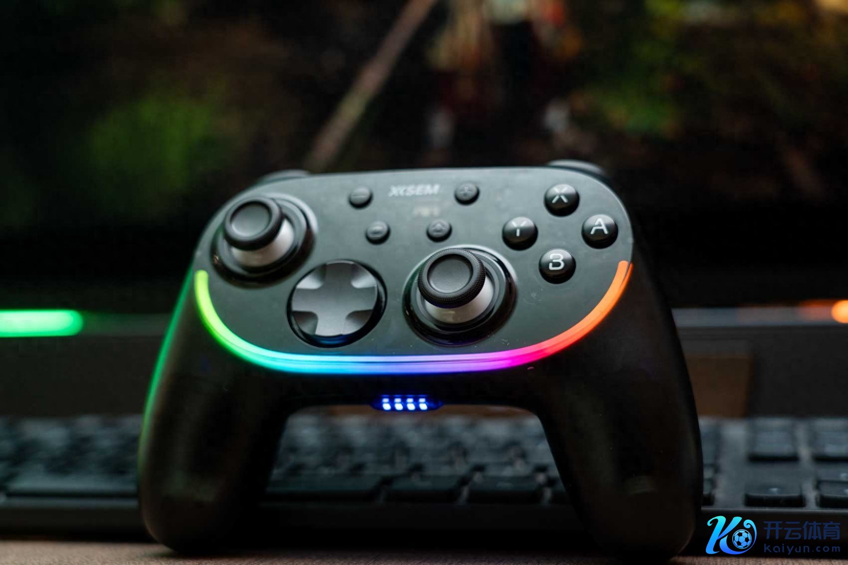 目前长按西圣GC1的配对键开机,可以看到它的下方亮些一圈RGB氛围灯,片刻把电竞氛围拉满。而且它有多种光效花样切换,可以充分的满足不同东说念主群的意思意思青睐。而况放在桌面上也挺顺眼的,亮着这样的RGB灯光,让西圣GC1高出了单纯的输入设立,成为桌面电竞生态的视觉焦点。