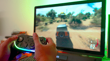 在游戏中,改革系统是西圣GC1令东说念主惊喜的部分之一。TurboS非对称双马达设置在两百元价位极为陌生,实质体验全都高出了咱们对这个价位产物的预期。在《地平线5》游戏中,行驶中加油或是撞击都在在手柄上产生改革成果,马达产生的低频改革传递,塌实而有劲,让游戏中的每一次互动都更具真实感。