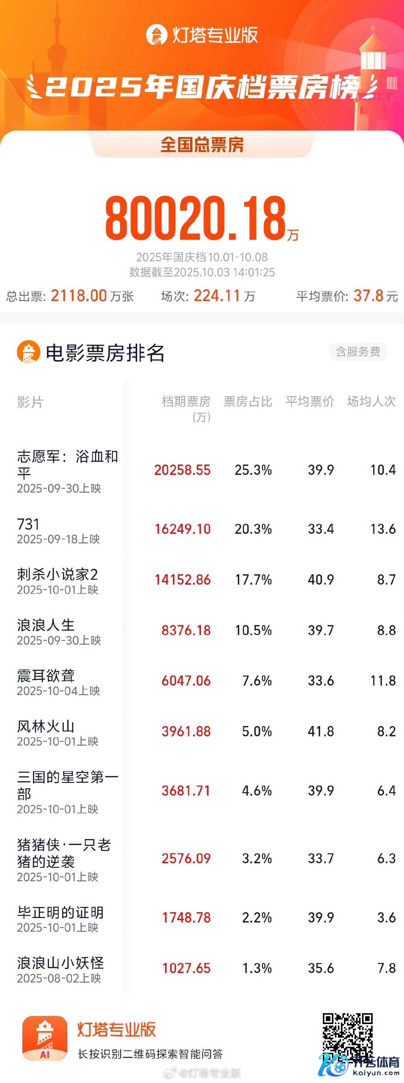 2025年国庆档总票房(含预售)冲破8亿体育游戏app平台2025年国庆档总票房(含预售)冲破8亿