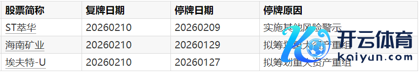 A股复牌领导:3股当天复牌A股复牌领导:3股当天复牌