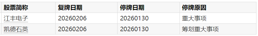 A股复牌领导:2股当天复牌A股复牌领导:2股当天复牌