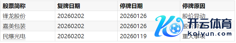A股复牌辅导:3股当天复牌A股复牌辅导:3股当天复牌