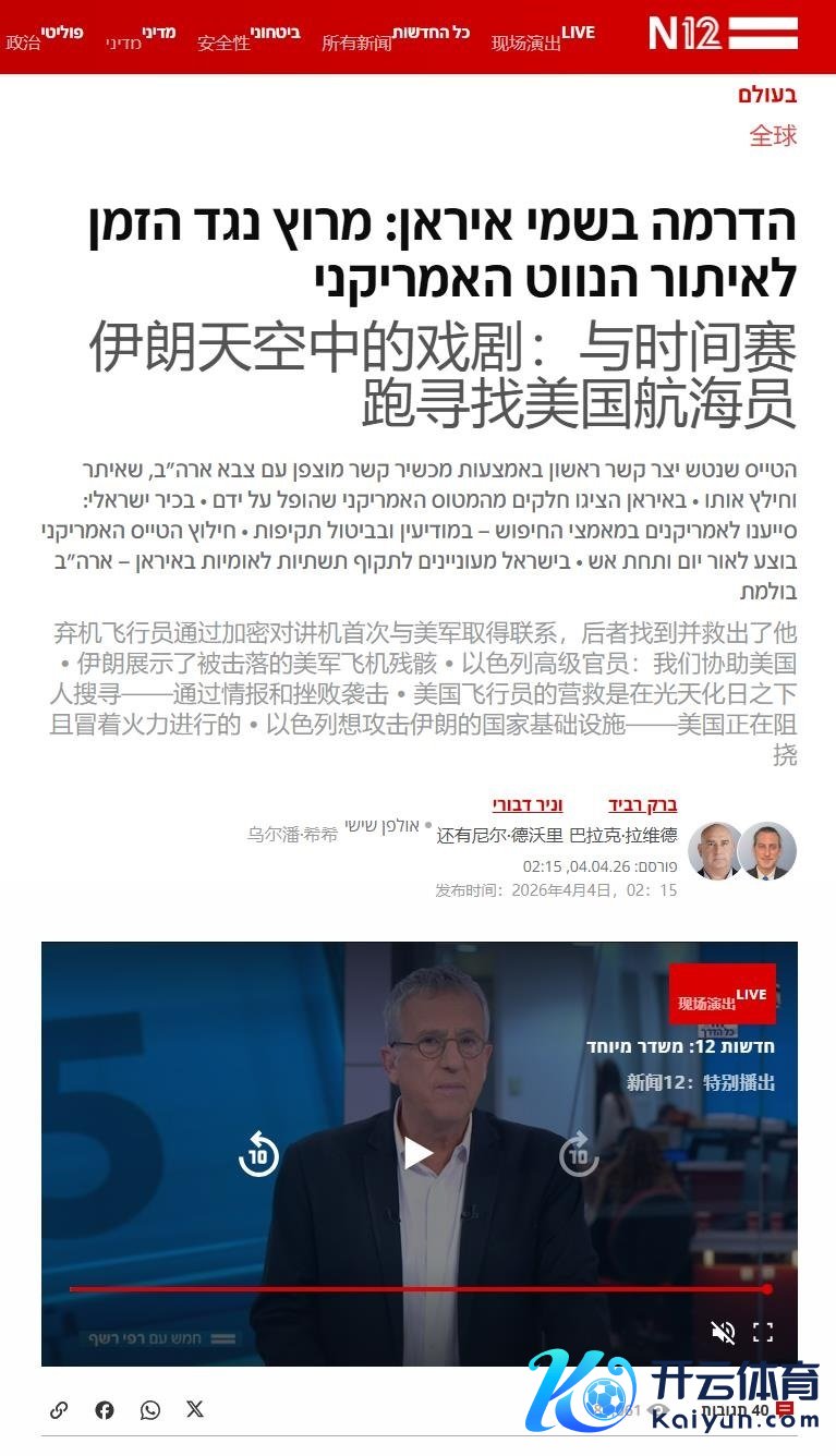 从多个方面不错证实这个音讯,开首是以色列N12媒体的报谈,F-15E袭击鹰后座火器在弹射落地失去果断并眇小脑颠簸,因此无法立即与好意思军获得干系,到了中午他从能找到的最高点与外界获得干系,以幸免被俘。随后他步碾儿了10–12公里,藏在一个岩缝中,并于周五晚发送了具体位置。