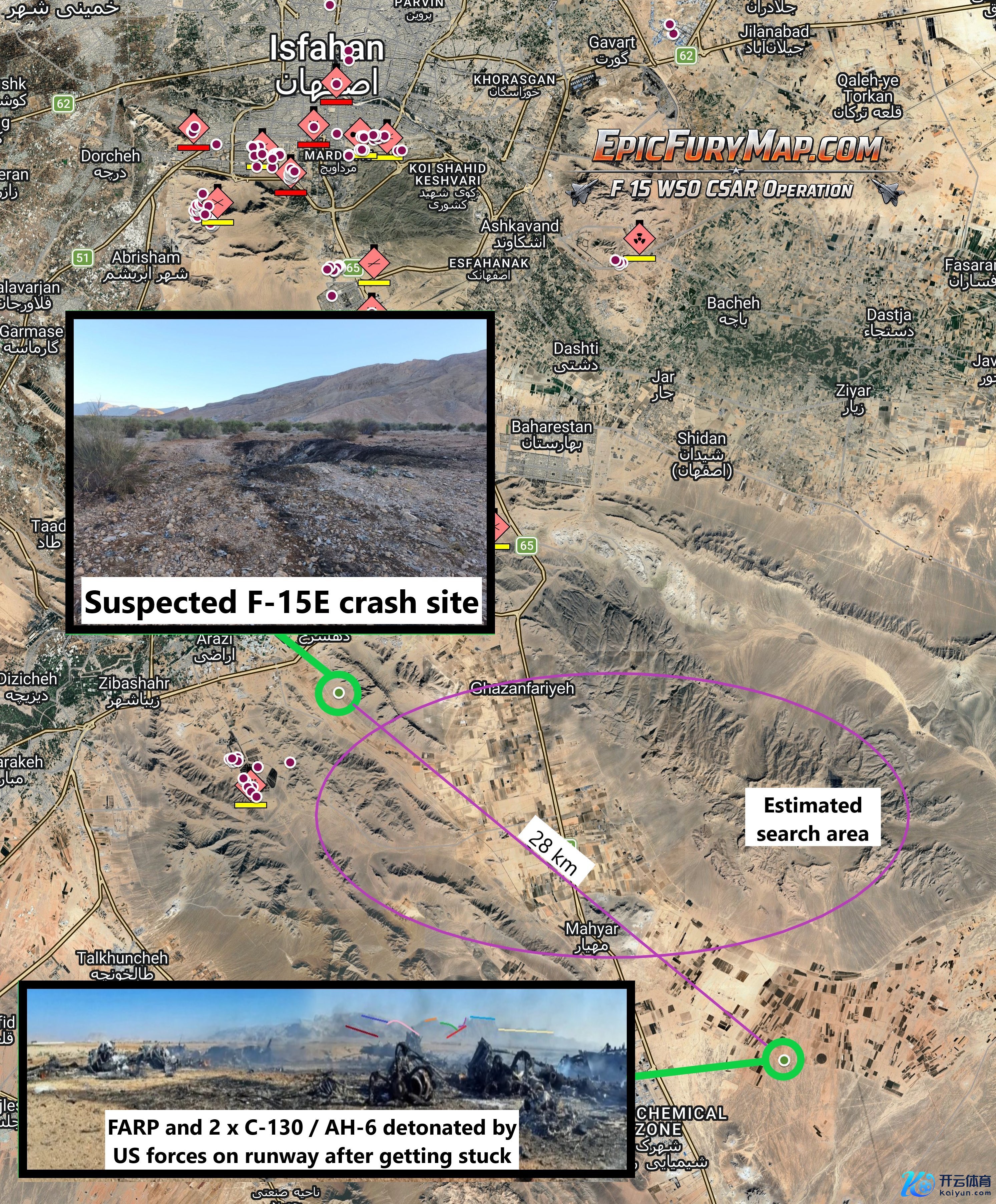 N12的报谈驯顺,火器官是不可走过最长12公里的路程!这点极端要害,不错用来辅助定位与扶助临时机场的相对位置。F-15E袭击鹰在4月3日凌晨被伊朗大地火力击中后坠毁,到两名翱游员跳伞,再到发现后座火器官的弹射座椅和好意思军第一次将翱游员从伊朗境内带离的全历程,好意思伊两边齐莫得公布任何精确坐标。