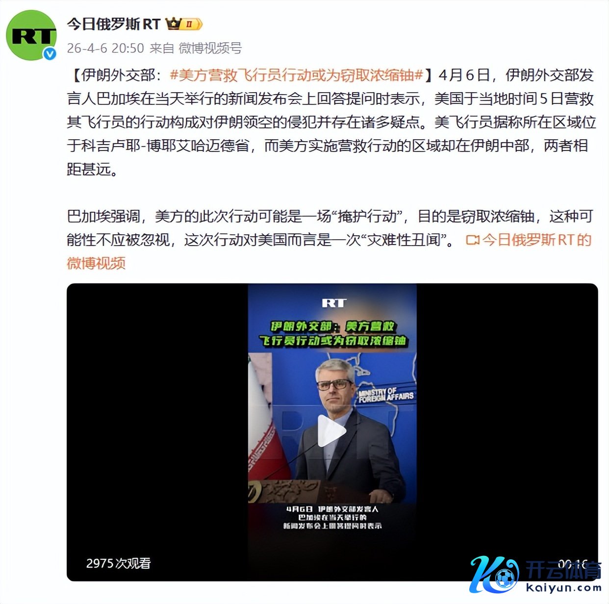 伊朗支吾部证实:好意思军救济翱游员实则篡夺浓缩铀!